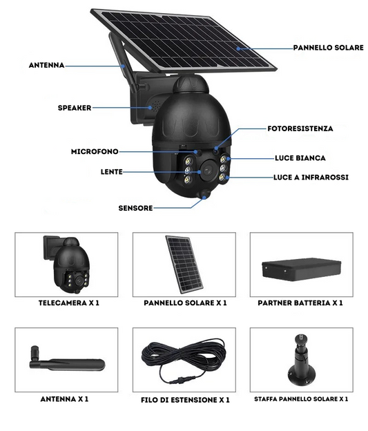 Telecamera con pannello solare 1080P WIFI | Maxistore™